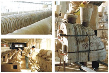 Once shaped, the product undergoes demolding, splicing, and surface refinement before proceeding to the next stage.